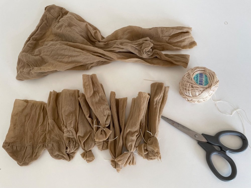 Najprije sam kupio ljubičasti luk, skinuo sloj kore i izrezao ga na male komadiće. Nakon toga sam izrezao najjeftinije ženske čarape koje sam za tu svrhu kupio u trgovini te ih na jednom kraju vezao debelim koncem. Izrezao sam papiriće te pripremio plastične vezice.
