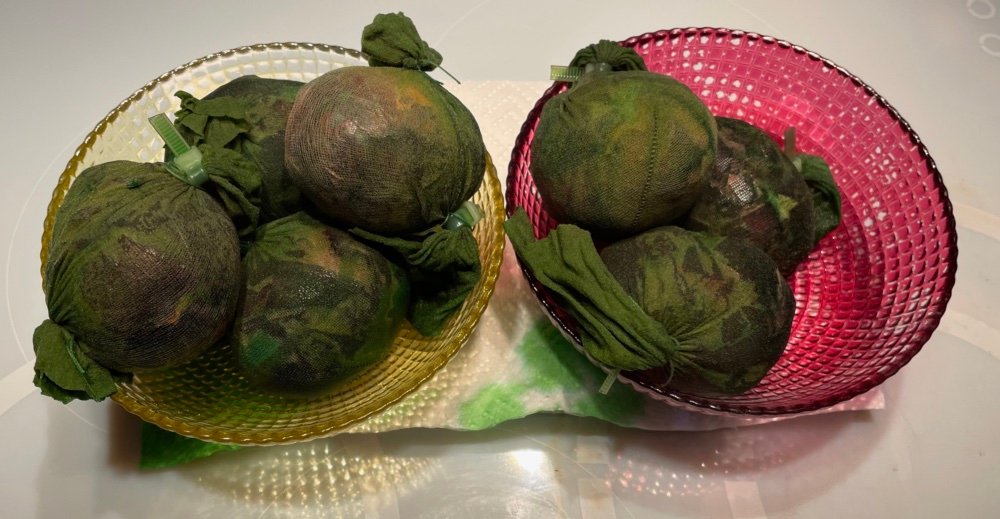 Nakon toga sam sve skupa ubacio u hladnu vodu i kuhao deset minuta, a onda dodao zelenu boju te kuhao još pet minuta, a nakon toga izvadio umotana jaja i stavio ih na hlađenje.