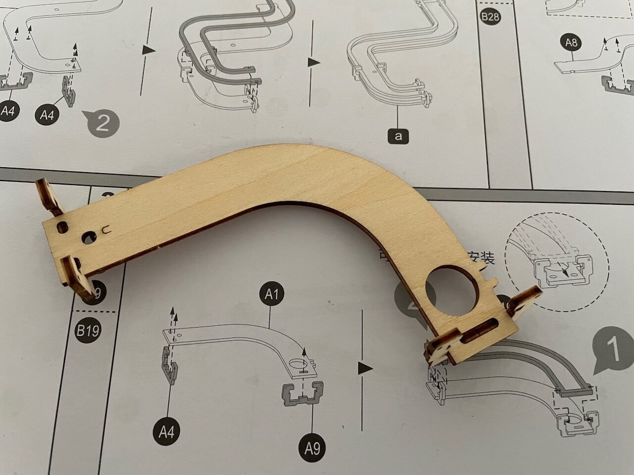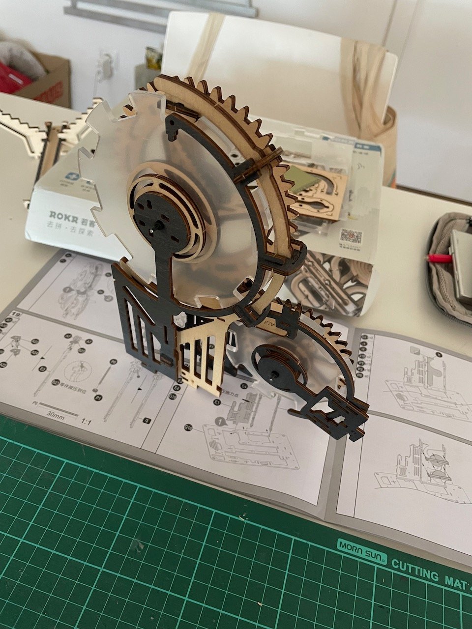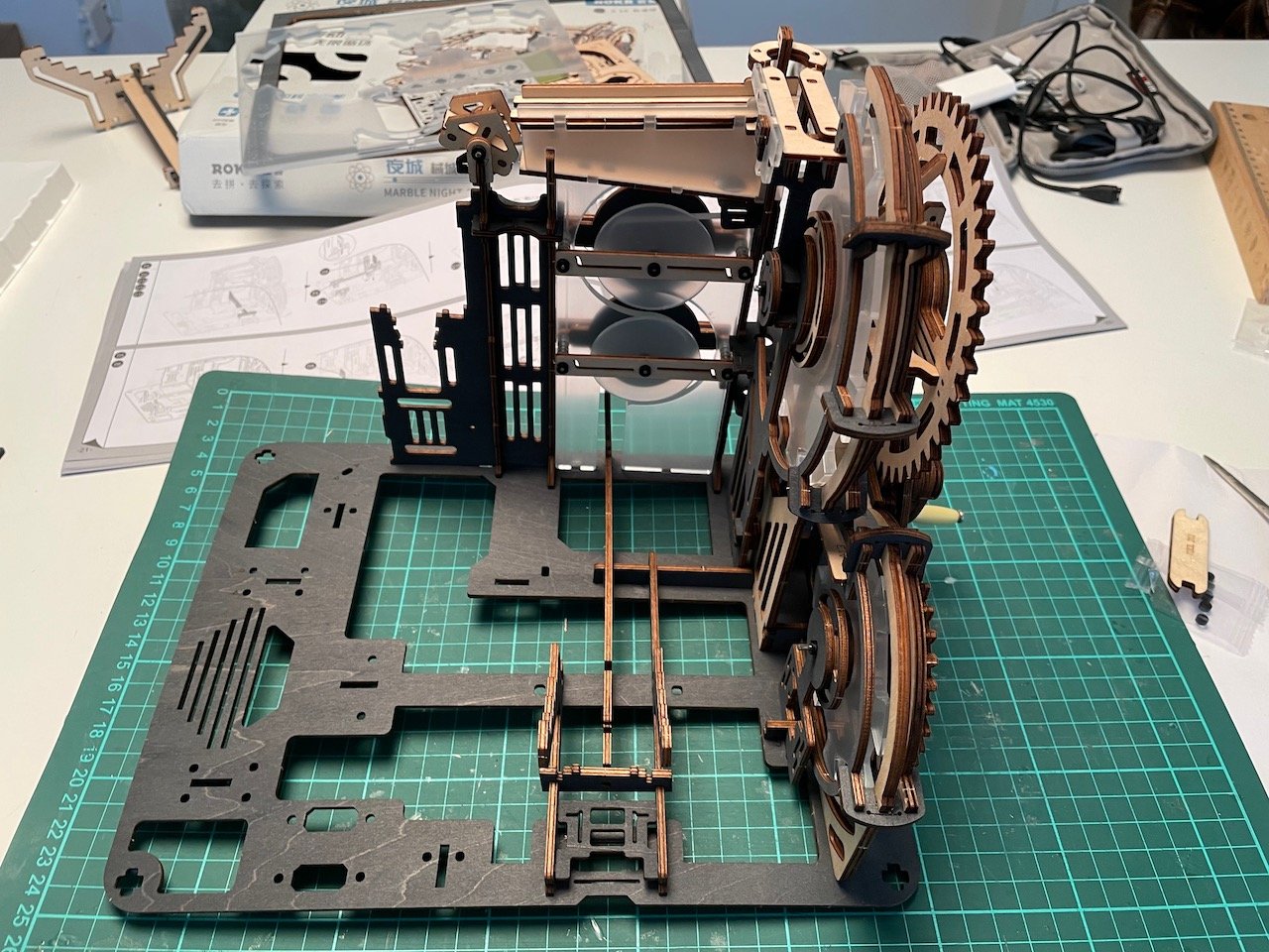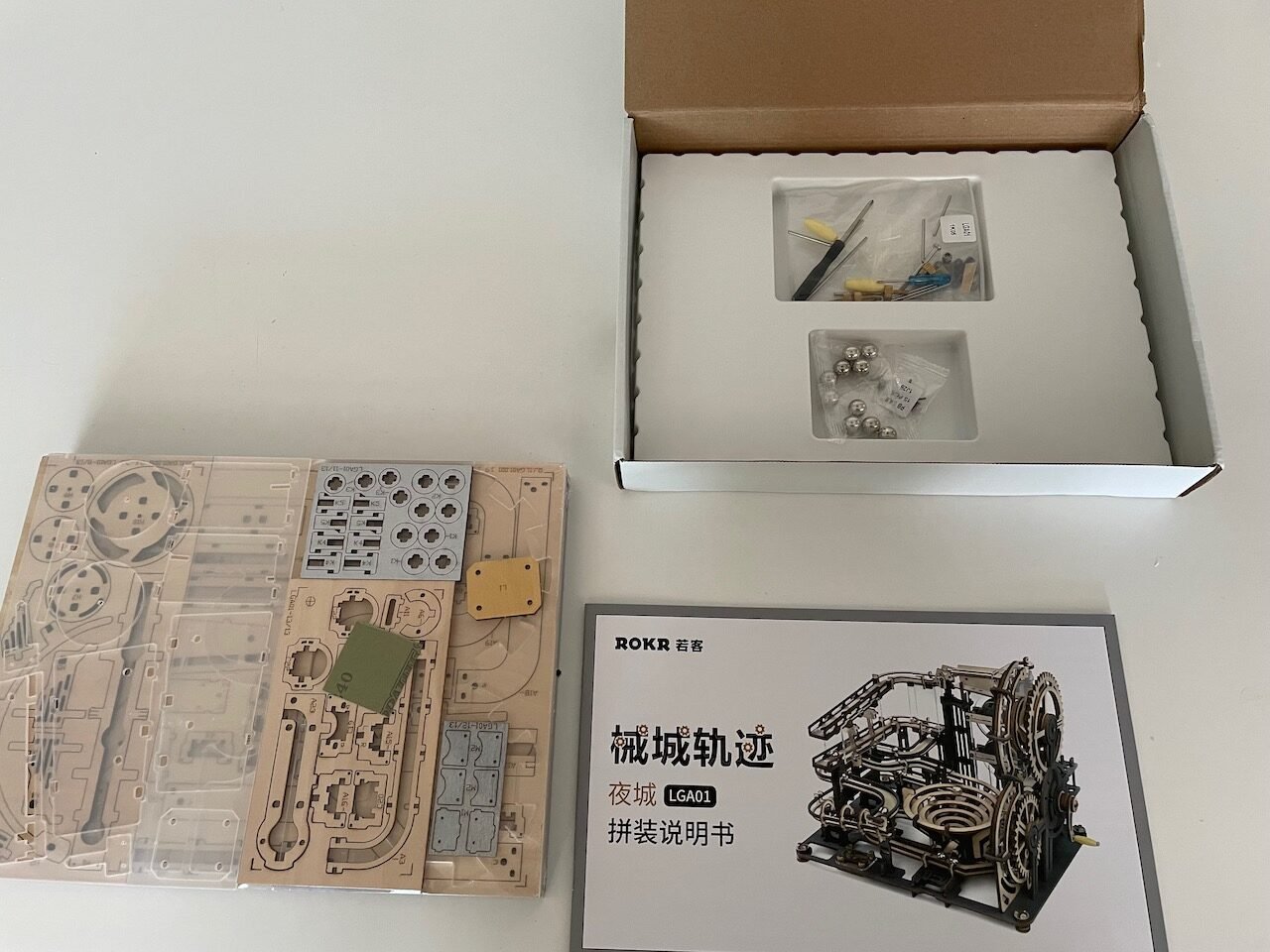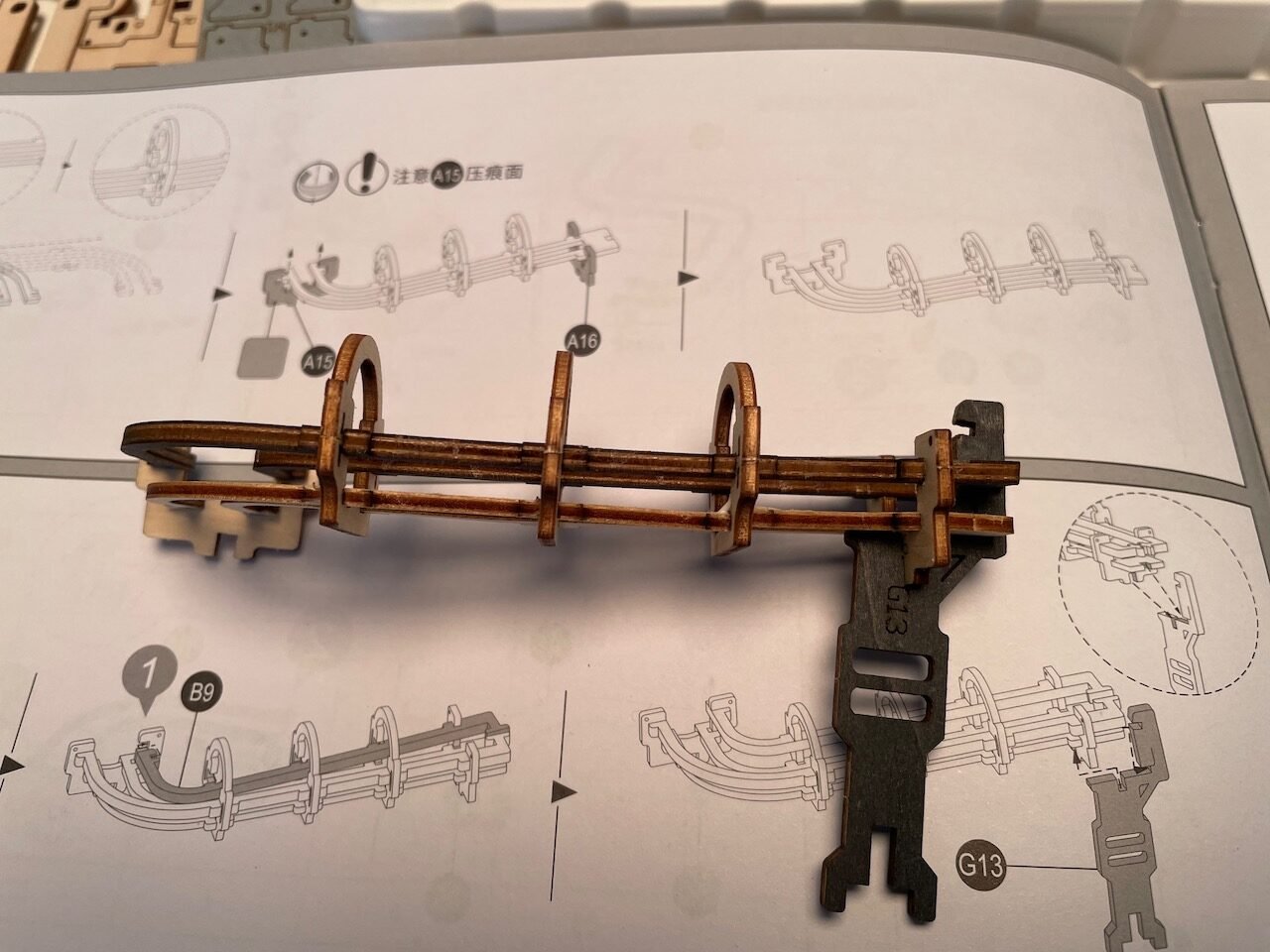 Naime, dijelovi te velike slagalice su precizno izrezani u drvenom materijalu, a neki i u debljoj plastici i jedino što je potrebno je pratiti upute. Nažalost, upute su na kineskom ali sreća u nesreći je da teksta ima malo, prevladavaju slike pa nisam imao prevelikih problema.