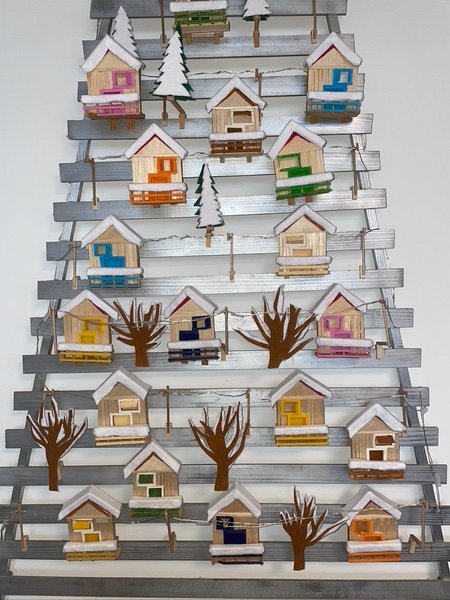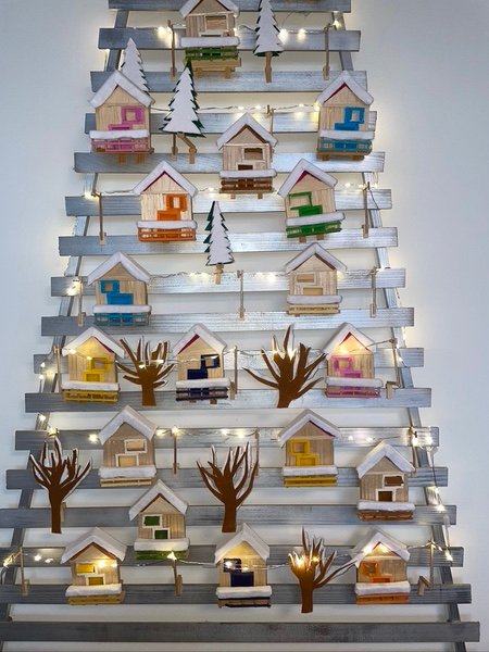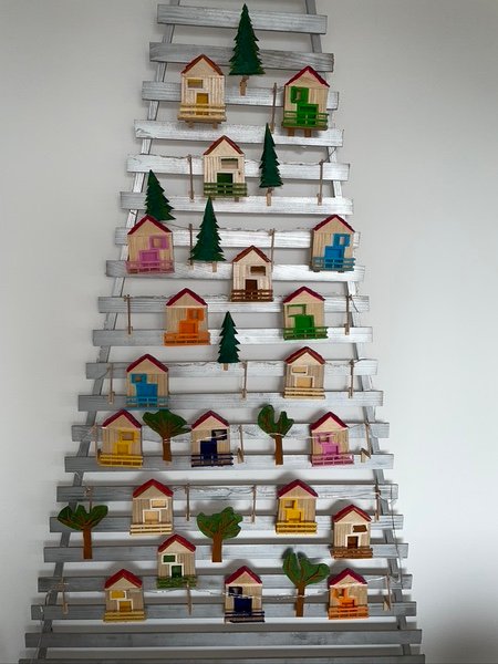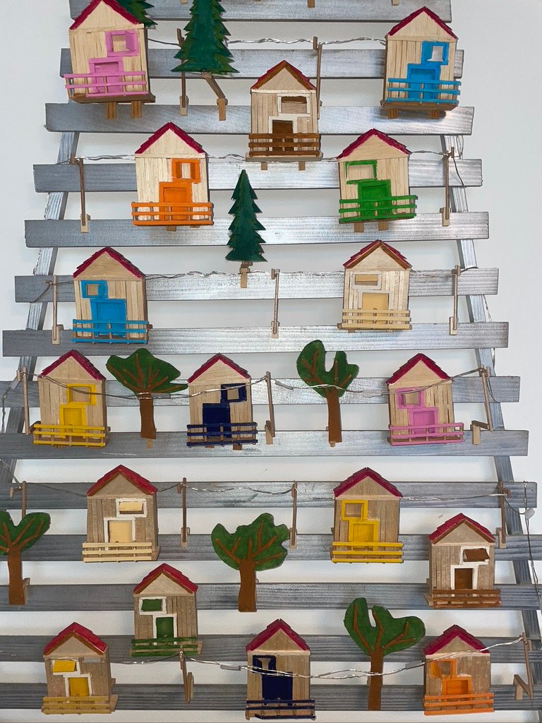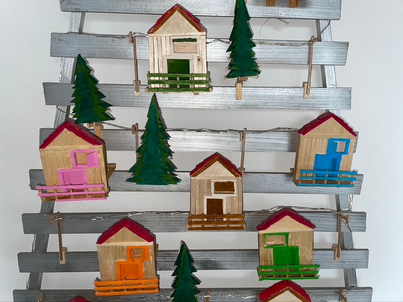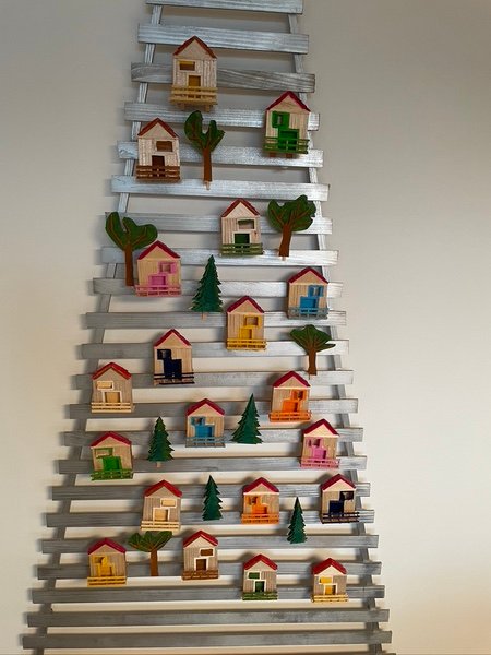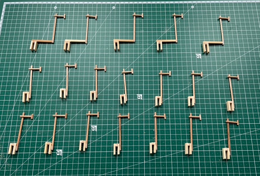 Izradio sam dvadeset stupova, od kojih sam petnaest namijenio vođenju žice iza kućica drveća, a pet sam izradio tako da su udaljene od nosača i gurnute u prostor pa će svjetalca nositi ispred kućica.