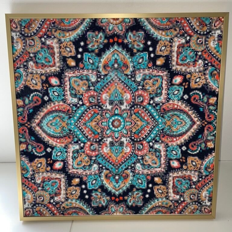 Naručujući komplet s motivom mandale na AliExpressu, pogrešno sam odabrao komplet za “diamond painting”. To je slično, ali još jednostavnije. Radi se o lijepljenju sitnih, raznobojnih plastičnih geometrijskih tijela, kvadratne baze. Ovdje je potrebno još manje tehnike. Zapravo, jedino što je potrebno je strpljivost i dobre oči, ili naočale s pravom dioptrijom.