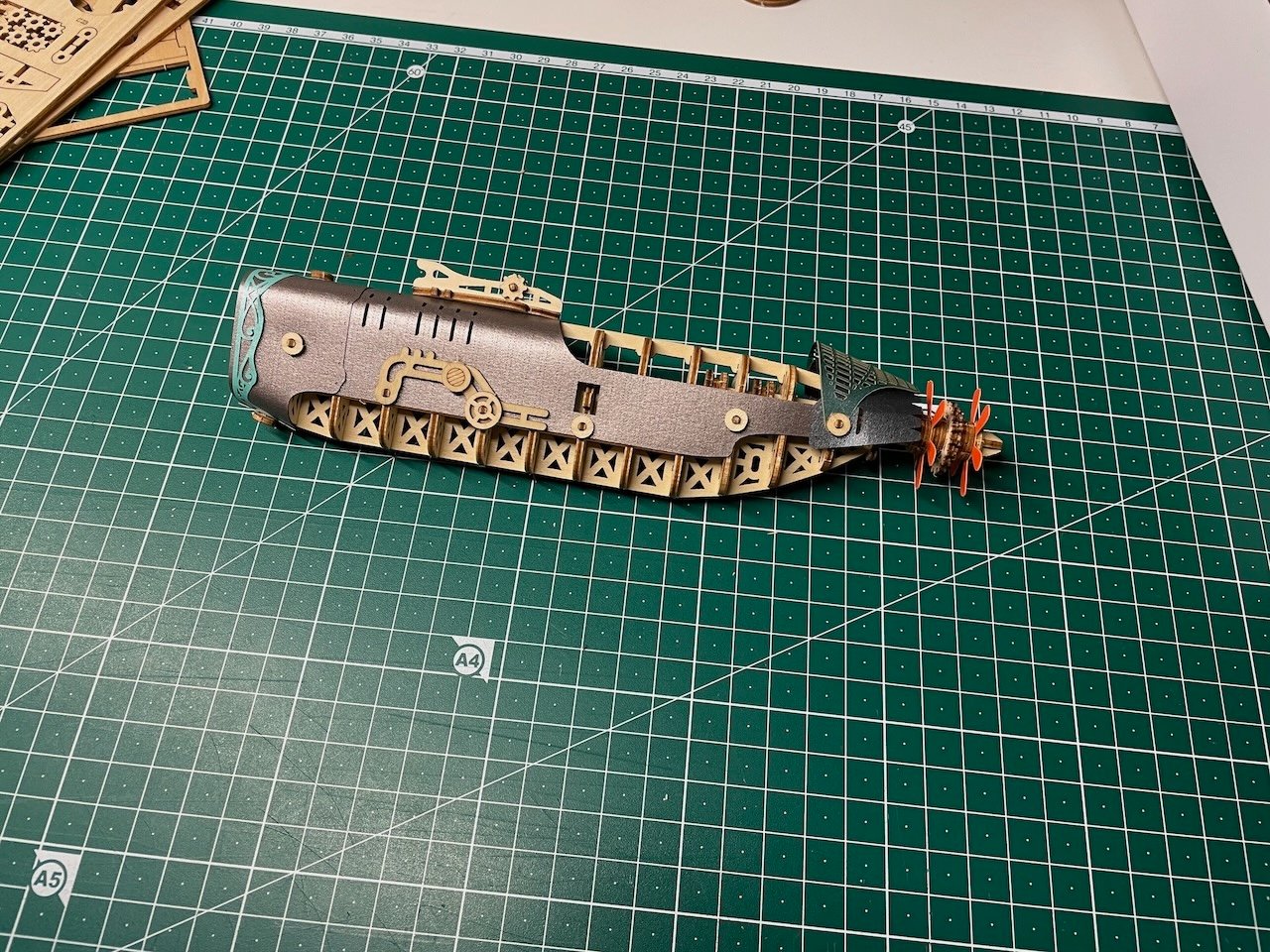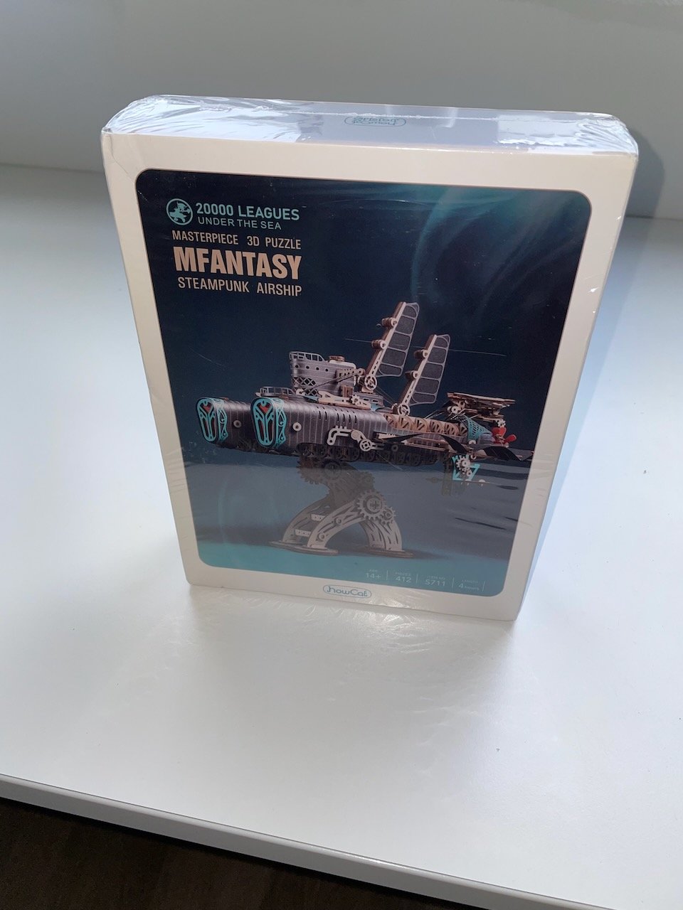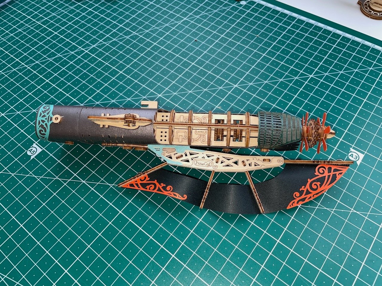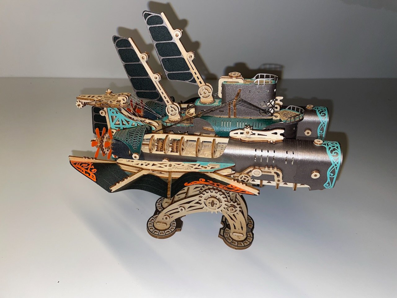 Radovao sam se izradi ovog steampunk modela. Radi se o cepelinu iz serije 20000 Leagues under the sea. Bilo ga je izrazito zabavno slagati. To je 3D puzzle forma koja sadrži već izrezane dijelove. Glavni posao ih je pažljivo izdvojiti s podloge i mehanički spojiti.