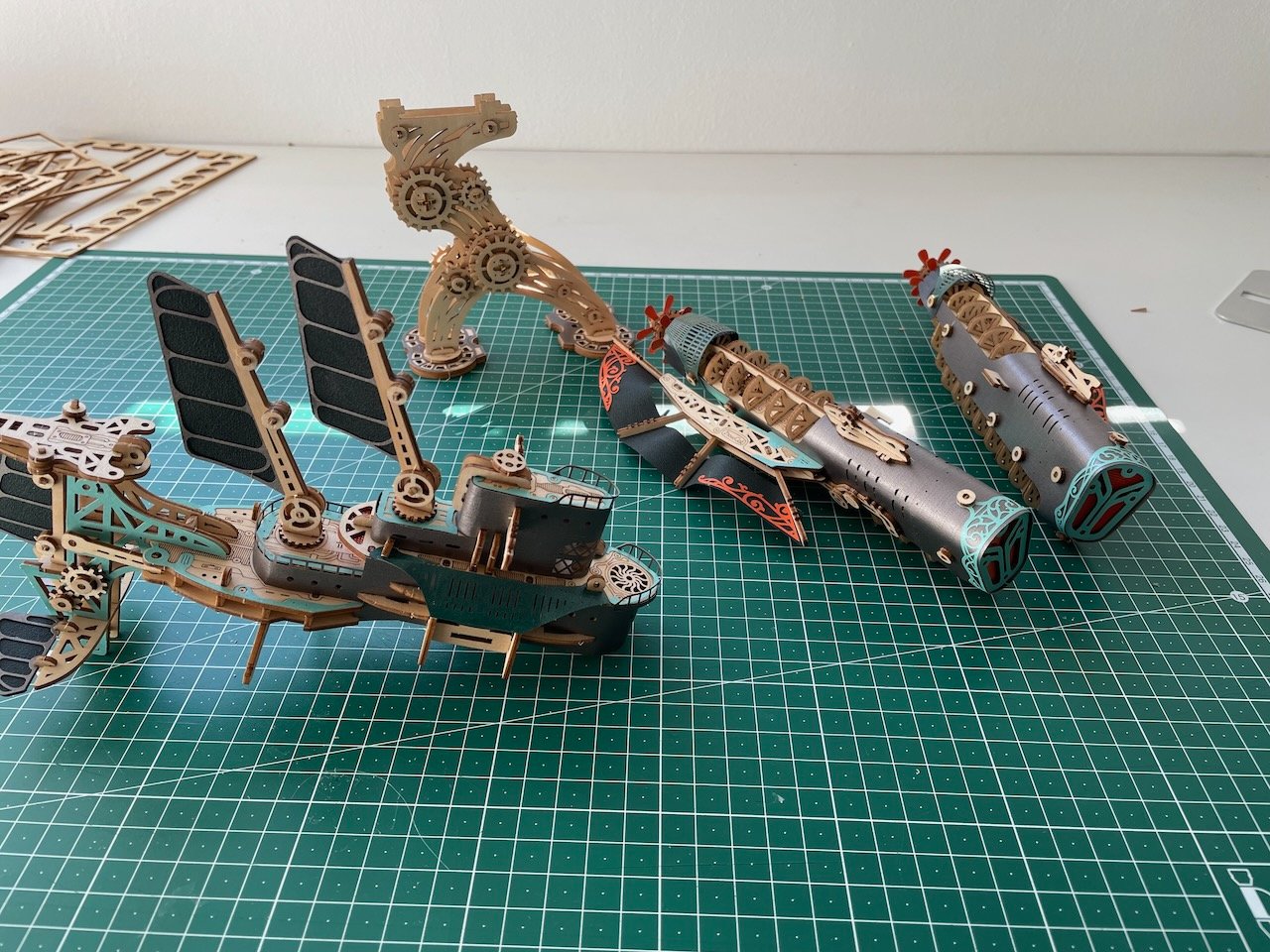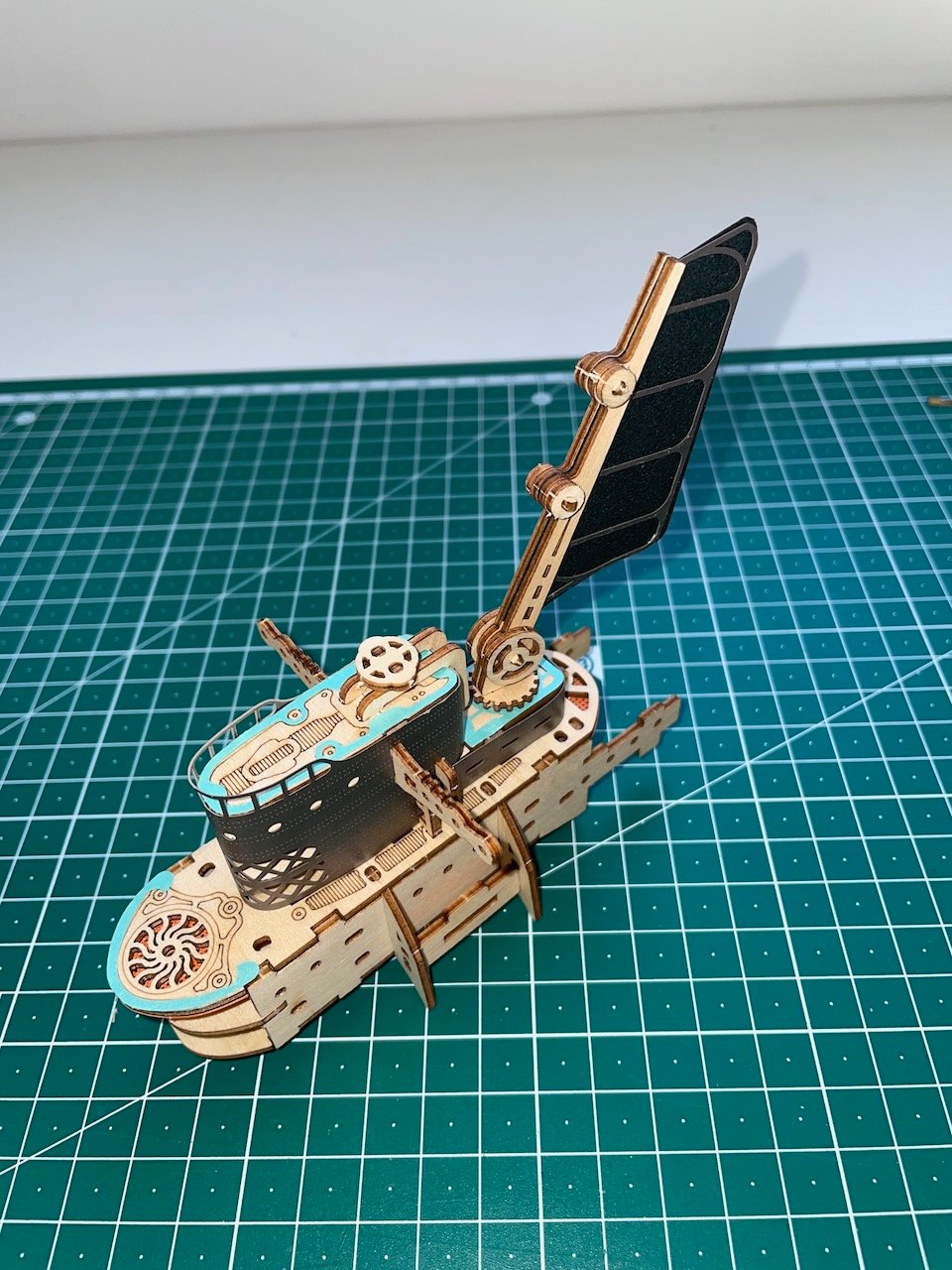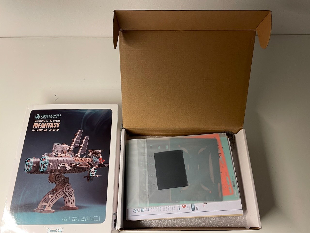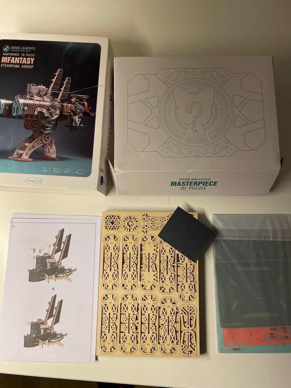 Radovao sam se izradi ovog steampunk modela. Radi se o cepelinu iz serije 20000 Leagues under the sea. Bilo ga je izrazito zabavno slagati. To je 3D puzzle forma koja sadrži već izrezane dijelove. Glavni posao ih je pažljivo izdvojiti s podloge i mehanički spojiti.