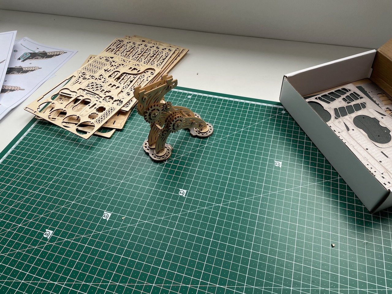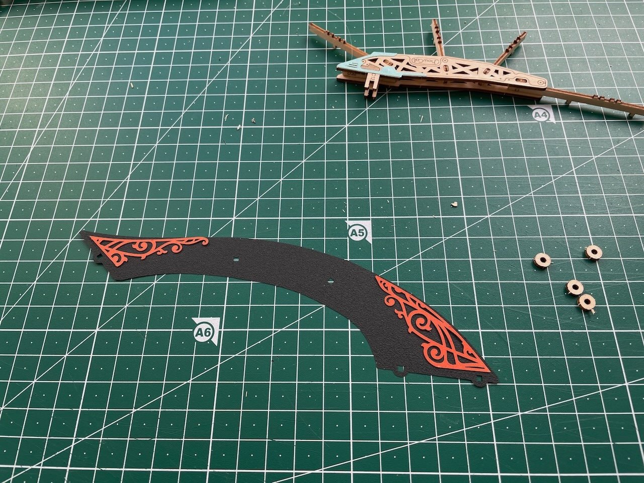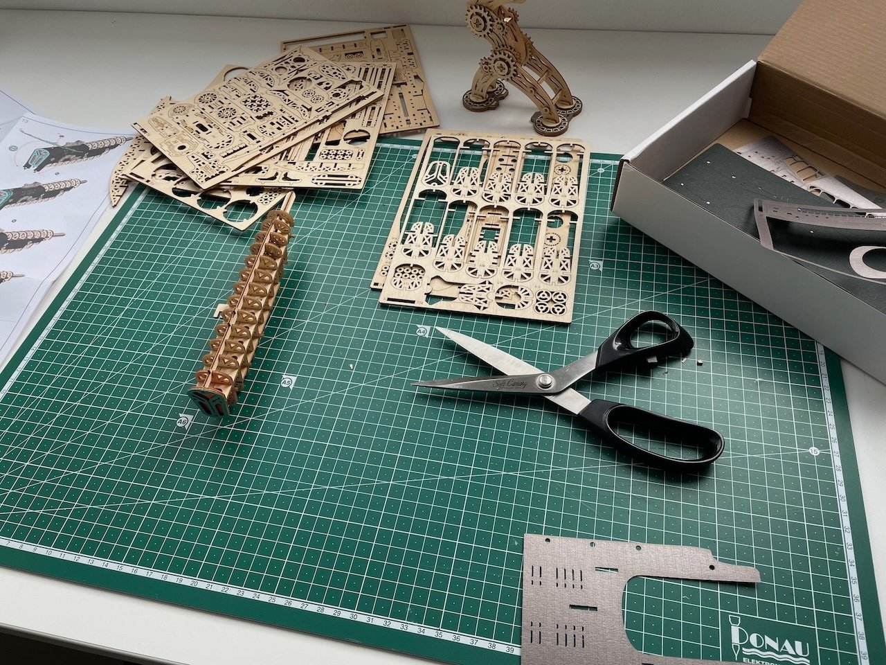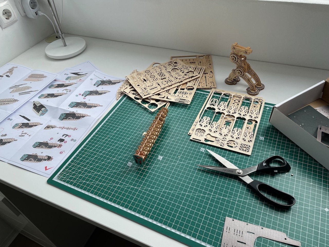 Ovaj model je specifičan po tome što se ima dosta papirnatih komponenti koje se lijepe na drvo. Ima i nešto ukrasnih konopčića koje je potrebno provući kroz pripadajuće vodilice.